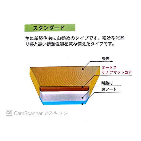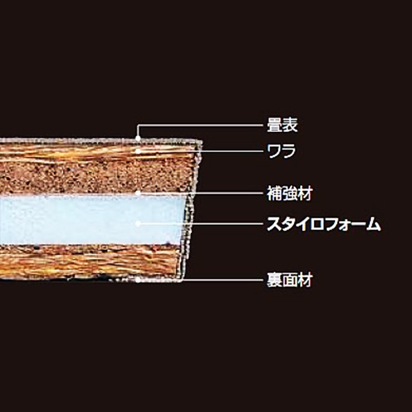 ワラを一切使わないでポリスチレンフォームや木質繊維ボードなどを使用したものです。他の物に比べ、ダニ・カビが発生しにくいのが特徴